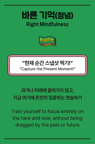 일상 속 행복 습관을 만드는 8가지 지혜 팔정도 카드를 수집하여 나의 깨달음을 발견하세요.