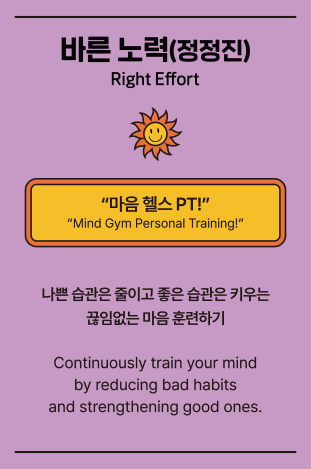 일상 속 행복 습관을 만드는 8가지 지혜 팔정도 카드를 수집하여 나의 깨달음을 발견하세요.